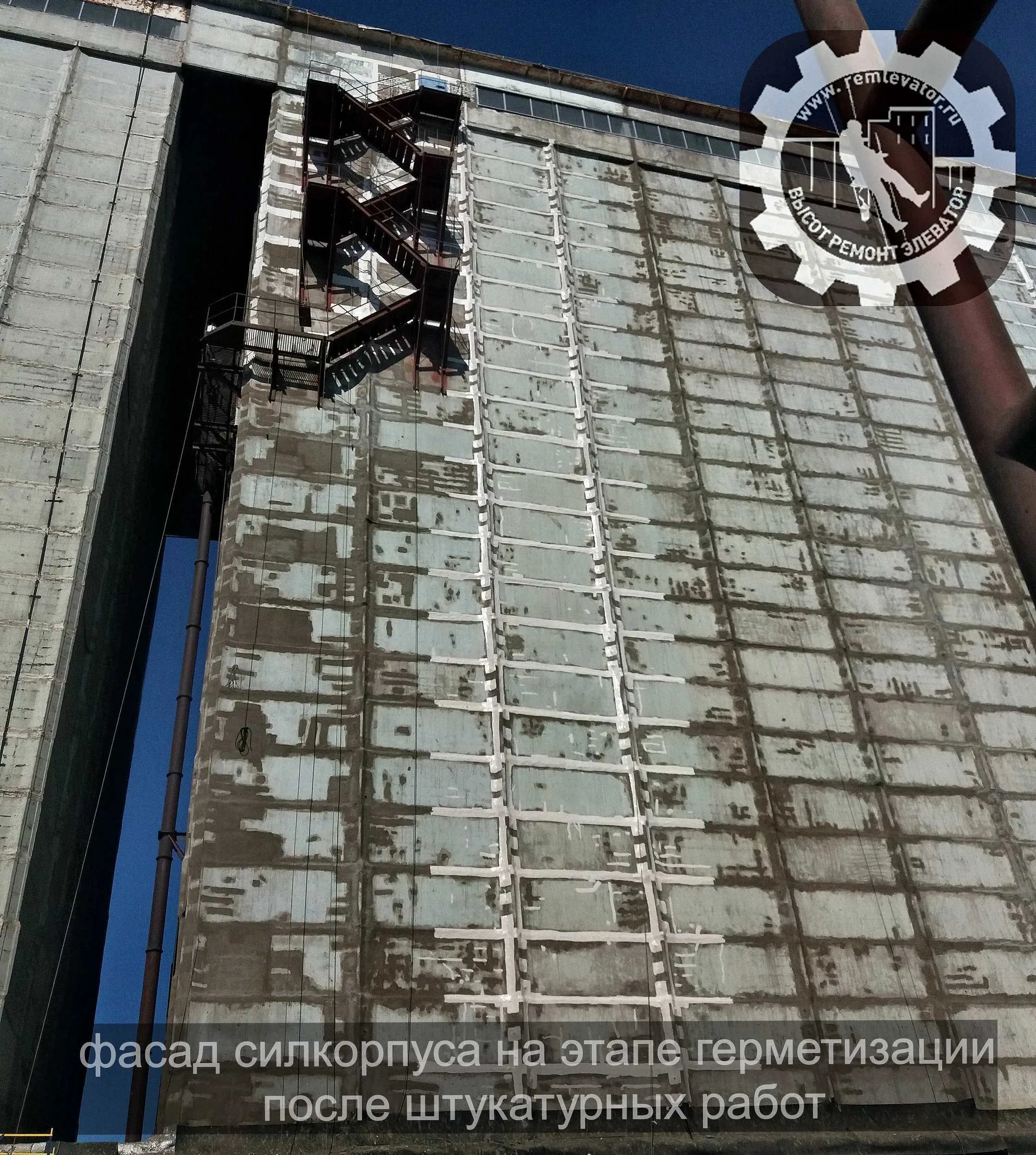 Наша компания занимается комплексными ремонтными работами на элеваторных и силосных конструкциях, и мы готовы предложить заказчикам услугу герметизации межСОГовых швов железобетонного сборного элеватора, в которую обычно входят заделка и ремонт наружных стыков между панелями.