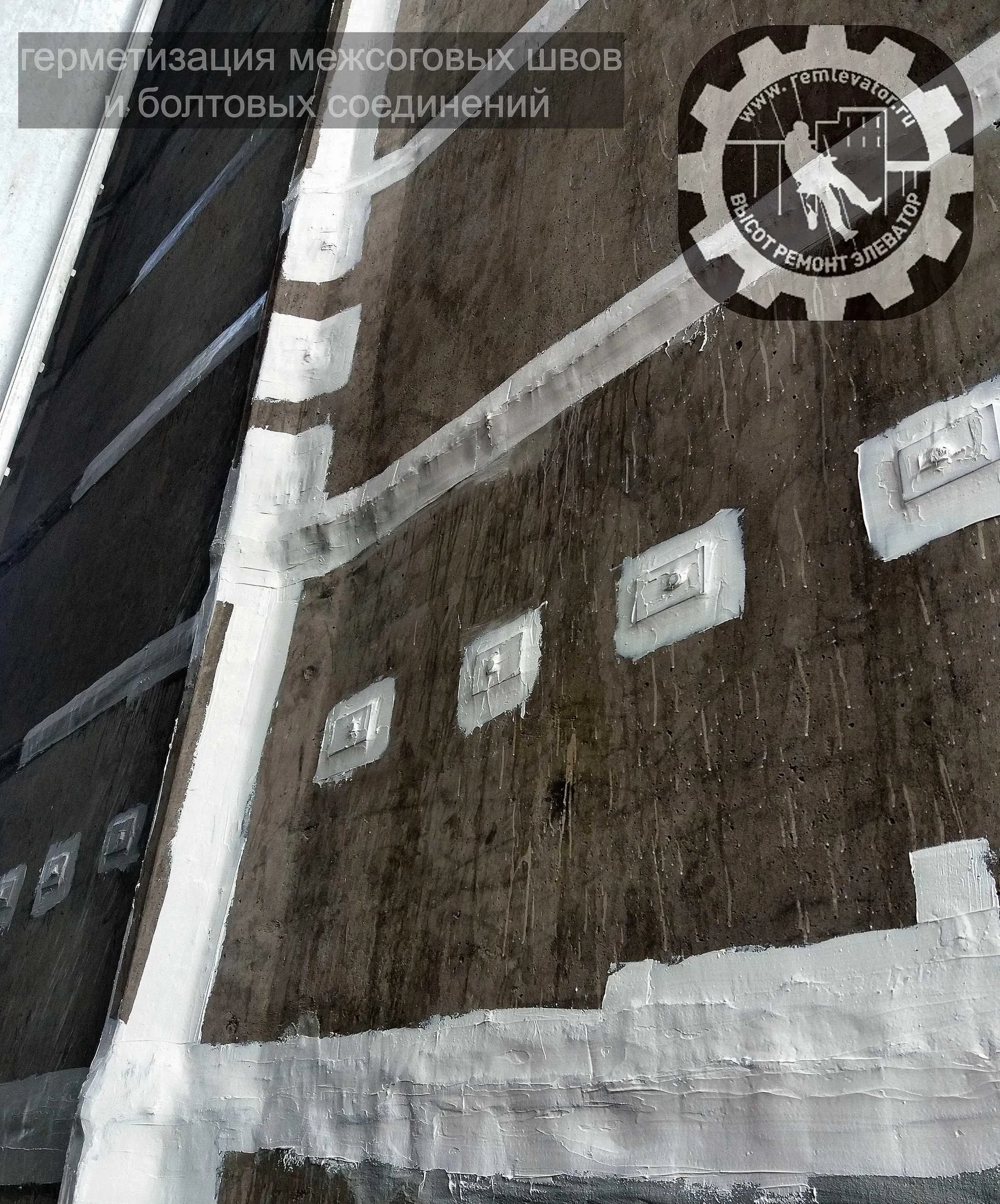 Процесс герметизации сборных железобетонных силосов состоит в нанесении на поверхность восстановленных (очишенных и оштукатуренных) межСОГовых швах и ниши болтовых соединений слоя особой мастики, которая надежно защищает от проникновения сырости и влаги, имеют плотную фактуру без пузырьков воздуха и обеспечивает долговечность и герметичность конструкции.