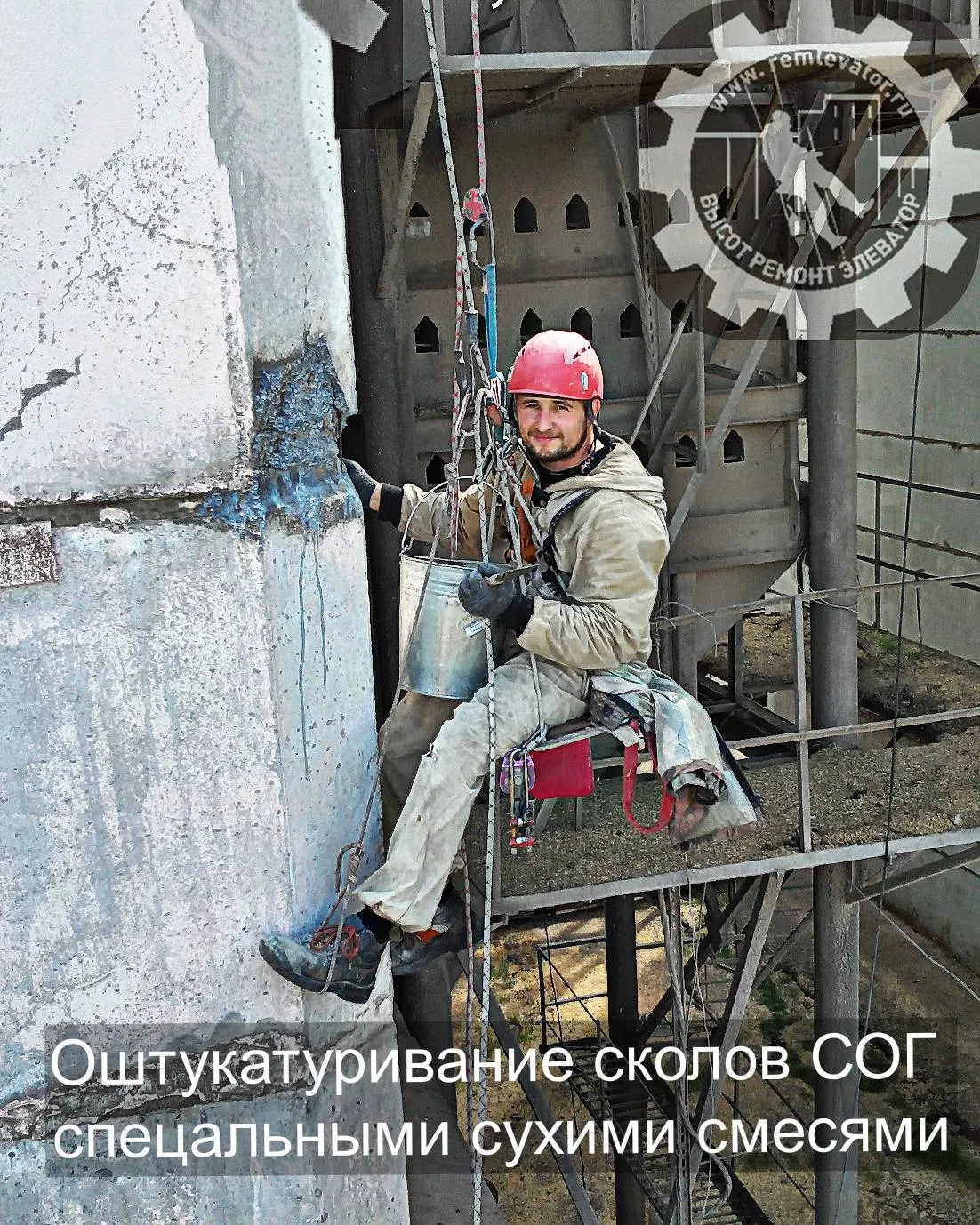 Наша компания предлагает клиентам обширный комплекс услуг по ремонту и обслуживанию элеваторов, в том числе оштукатуривание межСОГовых швов силосных построек. Наше кредо – это простота и надежность. Многолетний опыт и высокая квалификация мастеров позволяет выполнять полный спектр работ с гарантией надежного результата. Команда «ВысотРемонтЭлеватор» осуществляет аппаратную очистку швов, многоэтапную работу над устранением дефектов и восстановлением прочности и целостности конструкции, а также создает защиту для дальнейшего разрушения.