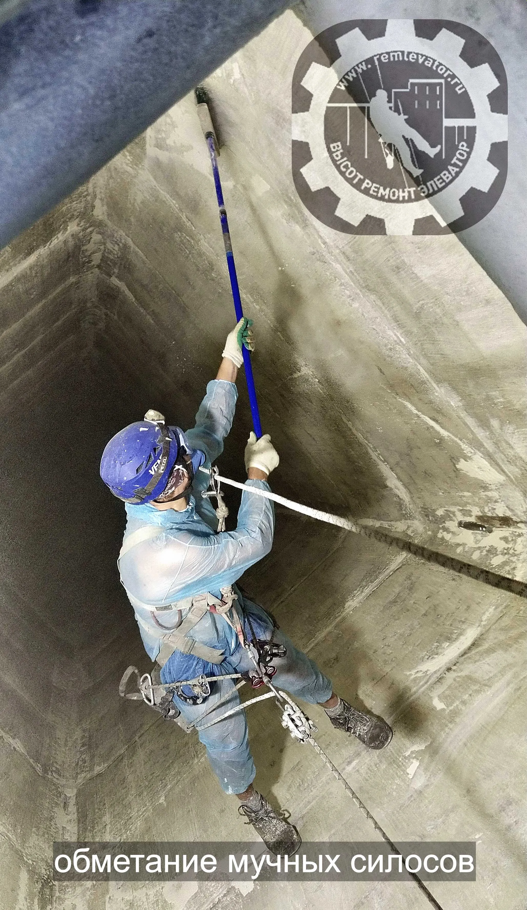 Очистка силосов и бункеров от зависаний сыпучих материалов, один из самых опасных видов работ, выполняющих промышленными альпинистами!