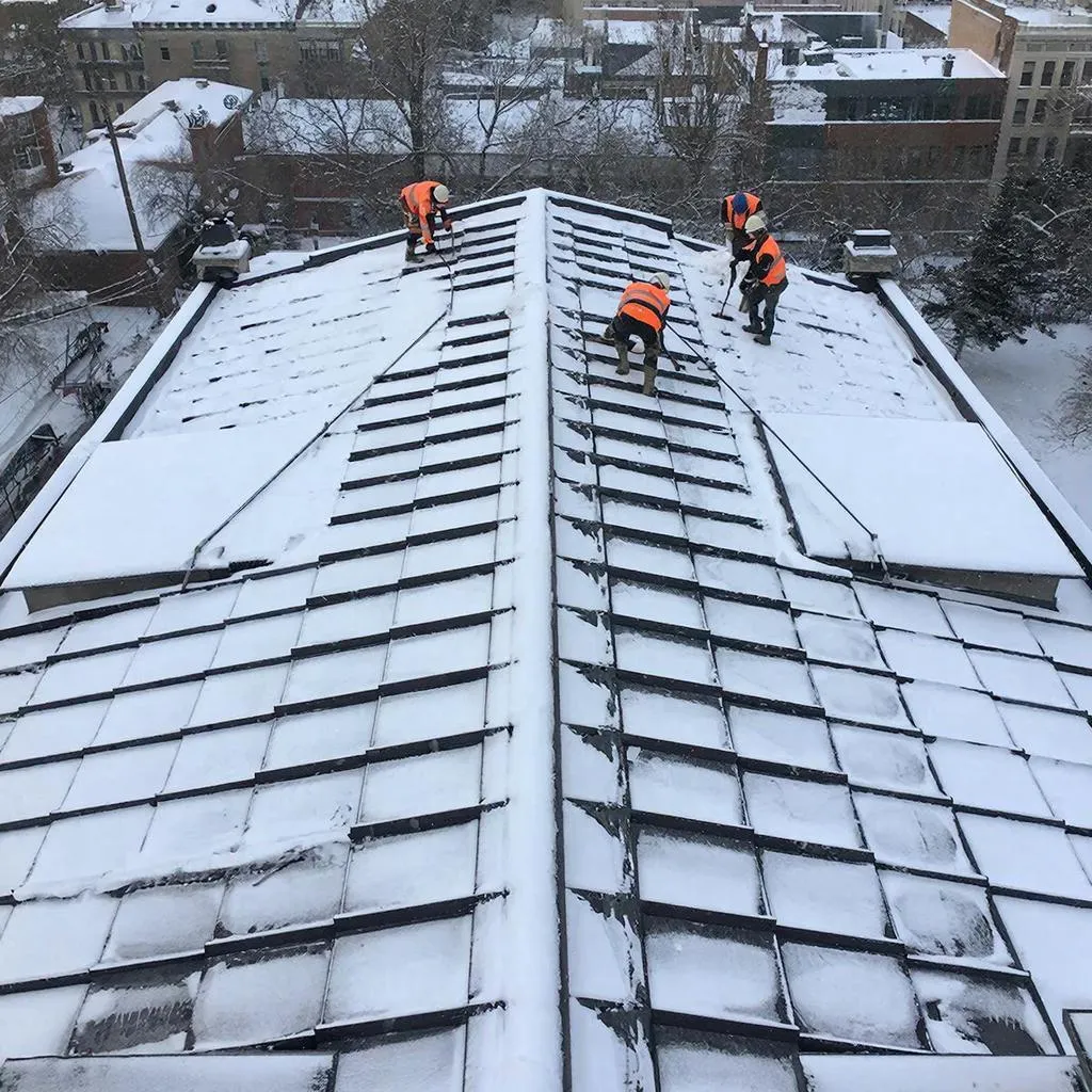 Массы снега, скапливающиеся на кровле, создают колоссальную нагрузку на несущие конструкции, что может привести к их деформации и даже обрушению. Кроме того, снег несёт прямую угрозу для прохожих и припаркованного транспорта. Когда нужна очистка крыш от снега и наледи, обращайтесь в компанию «ВысотРемонтЭлеватор» – у нас самое лучшее соотношение цена/качество. Все работы на высоте выполняют опытные промышленные альпинисты с использованием специального снаряжения – наша организация гарантирует безопасность и эффективность очистки даже на сложных кровлях.