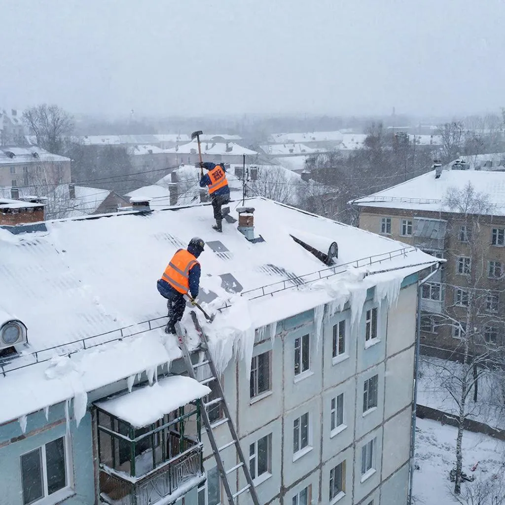 Каждый работник обеспечен системами индивидуальной страховки и защиты – страховочным поясом, каской и другим необходимым снаряжением. Процесс очистки выполняется аккуратно и последовательно. Снег снимается слоями, чтобы избежать неравномерной нагрузки на несущие конструкции. Наледь и сосульки удаляются с особой осторожностью, чтобы не повредить кровельное покрытие и не допустить падения крупных кусков льда.